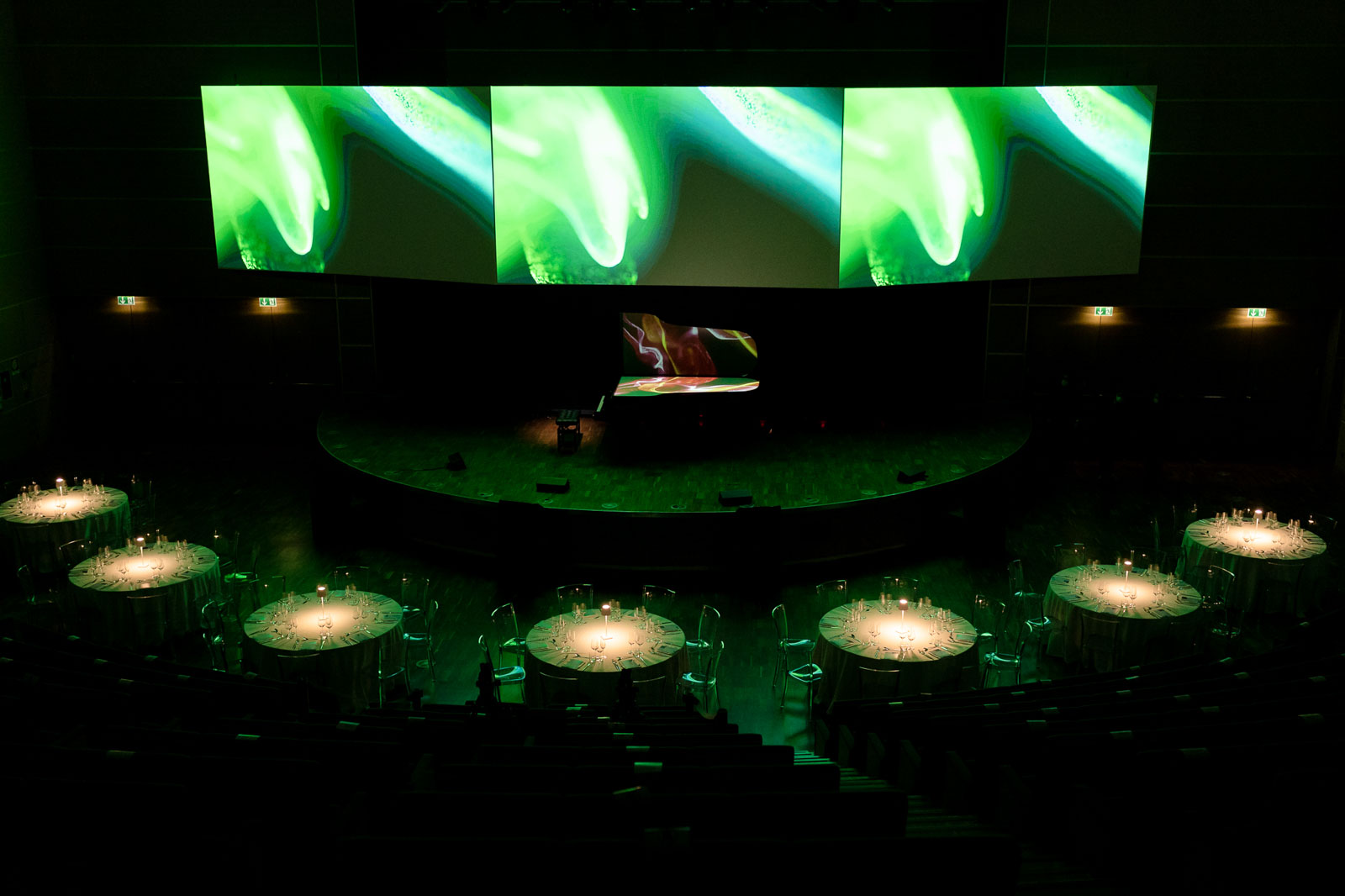 Per l’occasione è stata progettata una Sinfonia Sinestetica. Gli ospiti hanno vissuto l’emozione di vedere la musica in un crescendo di immagini interattive dal vivo. Le dita del pianista, un famoso compositore, scivolando sulla tastiera del pianoforte olografico, hanno prodotto note e suoni capaci di sprigiore un susseguirsi visionario di colori ed immagini enfatizzate sugli schermi mai viste prima. Il progetto è riuscito a stupire e suscitare emozioni, meravigliando con un racconto partito dalle origini e proiettato al futuro grazie anche alla strumentazione, asse portante ed elementi di valore del Palacongressi stesso.